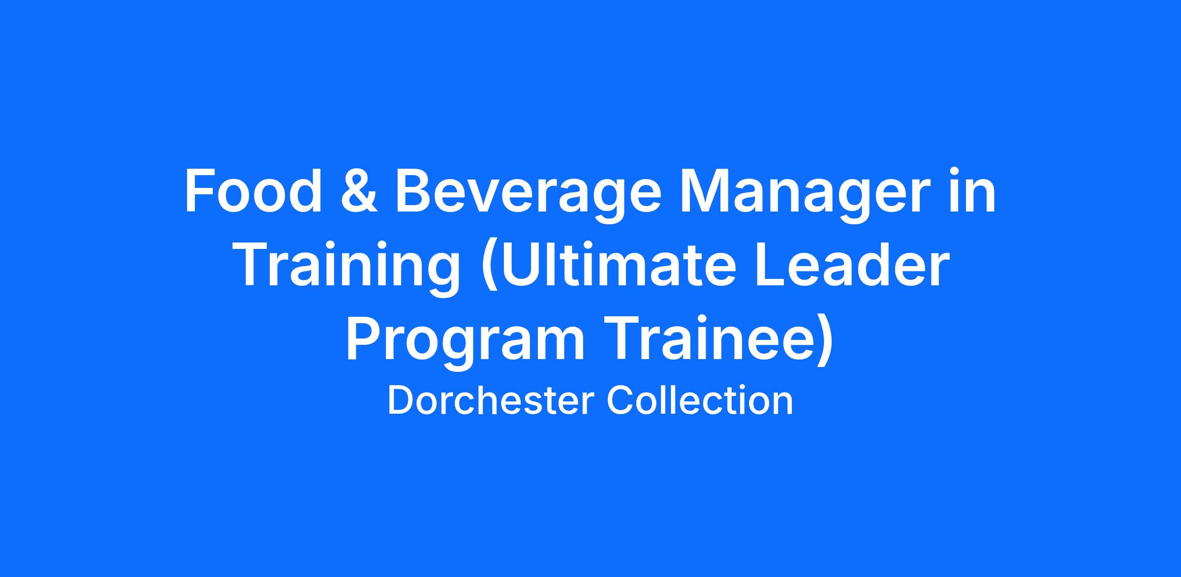 Food & Beverage Manager in Training (Ultimate Leader Program Trainee)