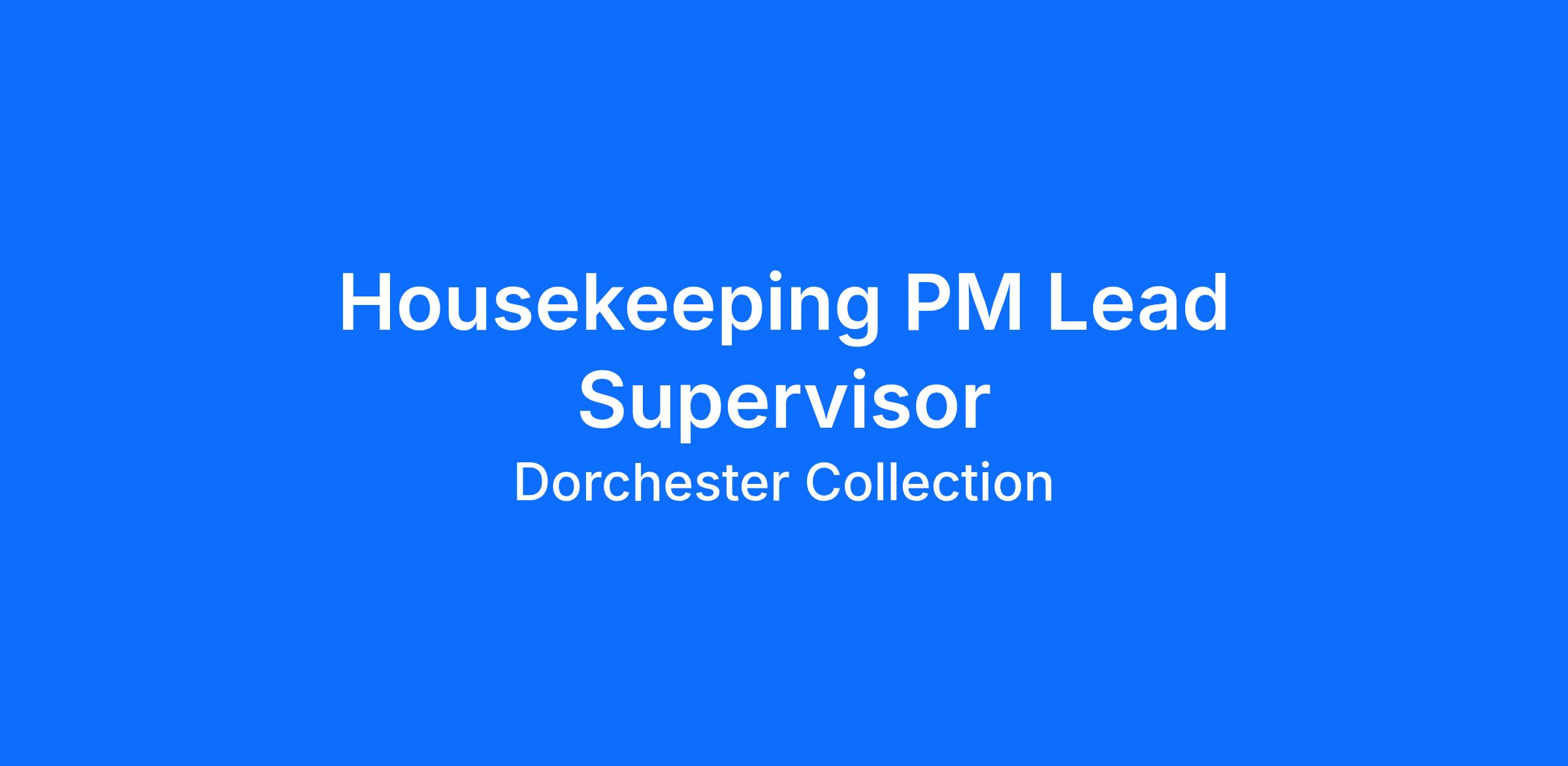 Housekeeping PM Lead Supervisor