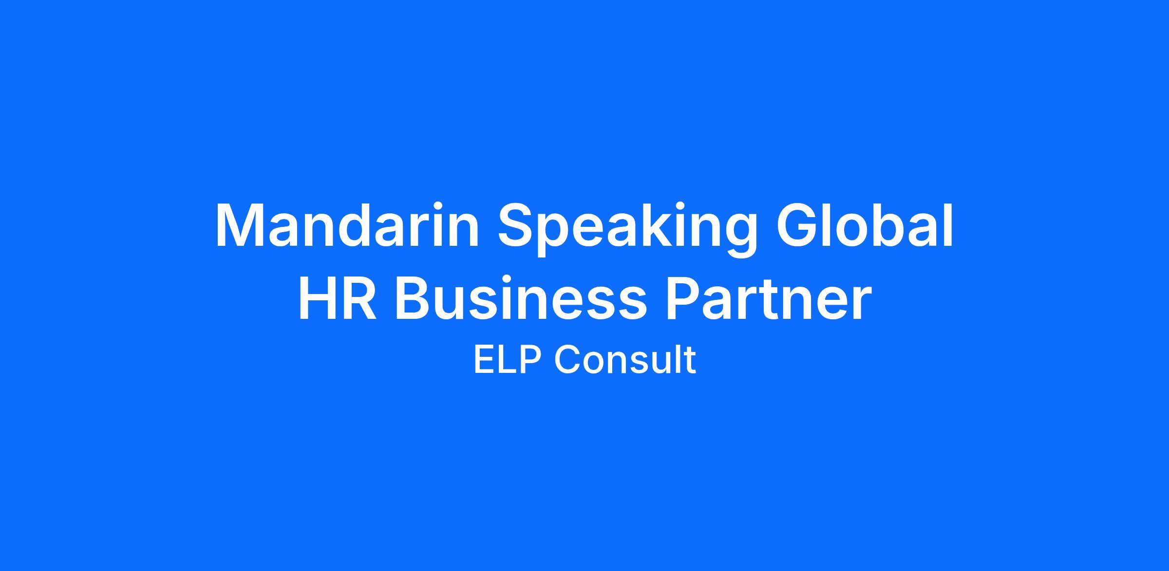 Mandarin Speaking Global HR Business Partner