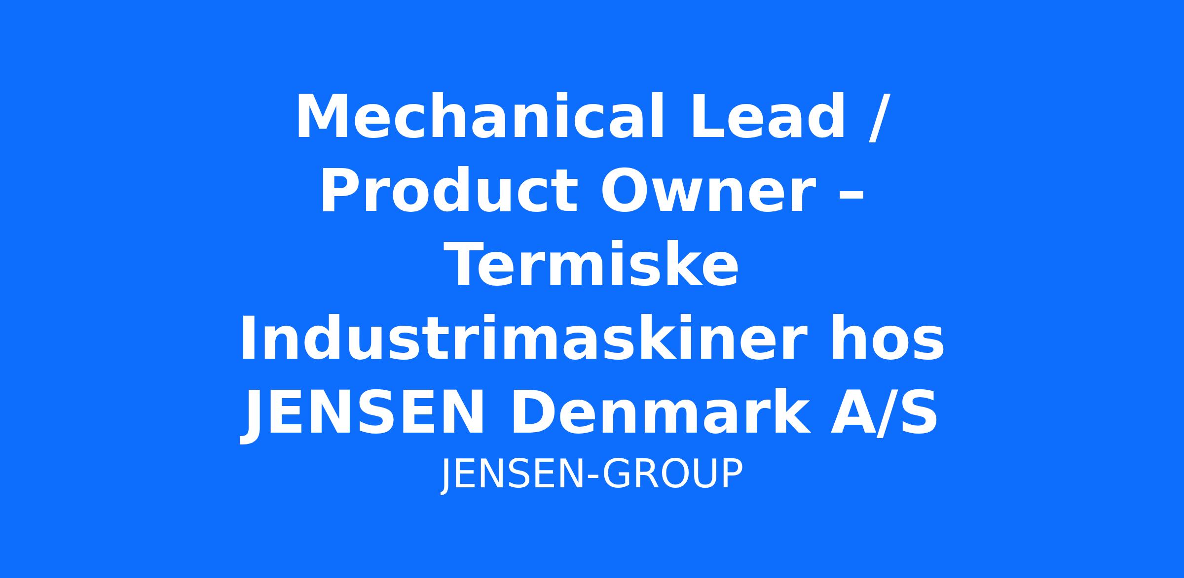 Hos JENSEN Denmark søger vi en Mechanical Lead / Product Owner, der vil stå i spidsen for den mekaniske udvikling af vores termiske maskiner såsom tørretumblere, tunnel finishers og strygeruller. Rollen kombinerer dyb teknisk indsigt, produktansvar og tværfagligt samarbejde i et internationalt udviklingsmiljø.